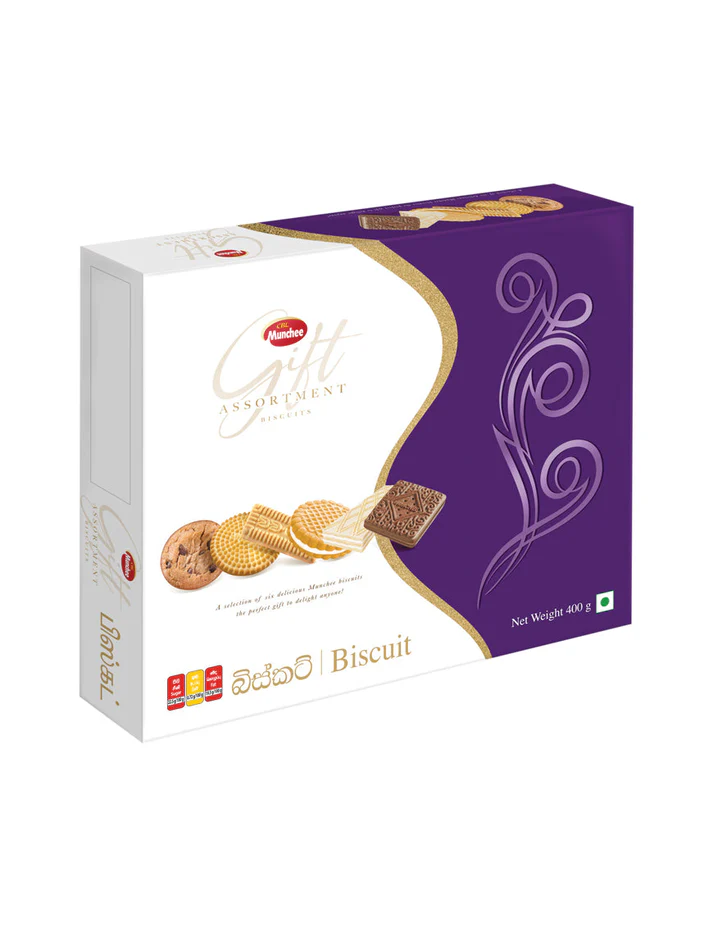 Indulge in the Munchee Gift Assortment 400g, a premium selection of Munchee’s finest biscuits, thoughtfully curated to offer a delightful snacking experience. This assortment includes: